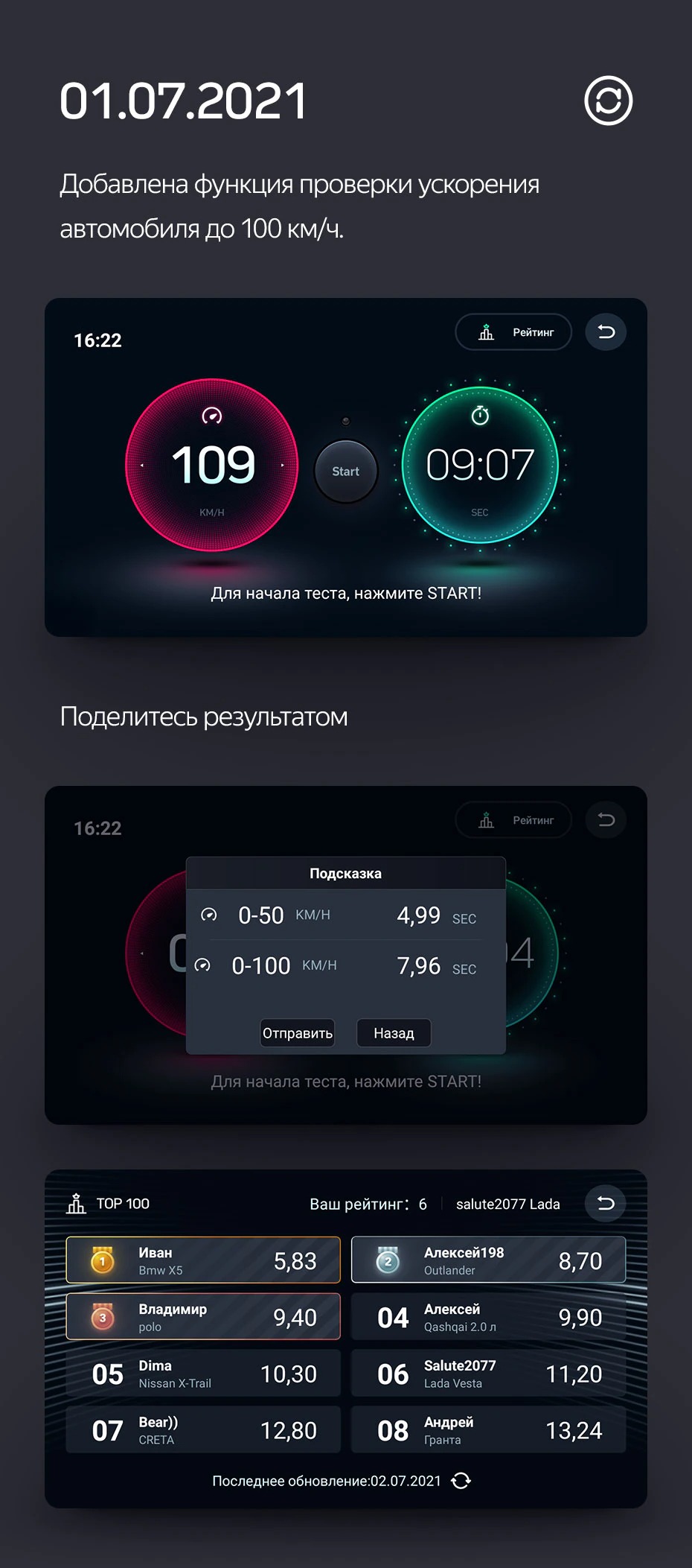 - скорость автомобиля