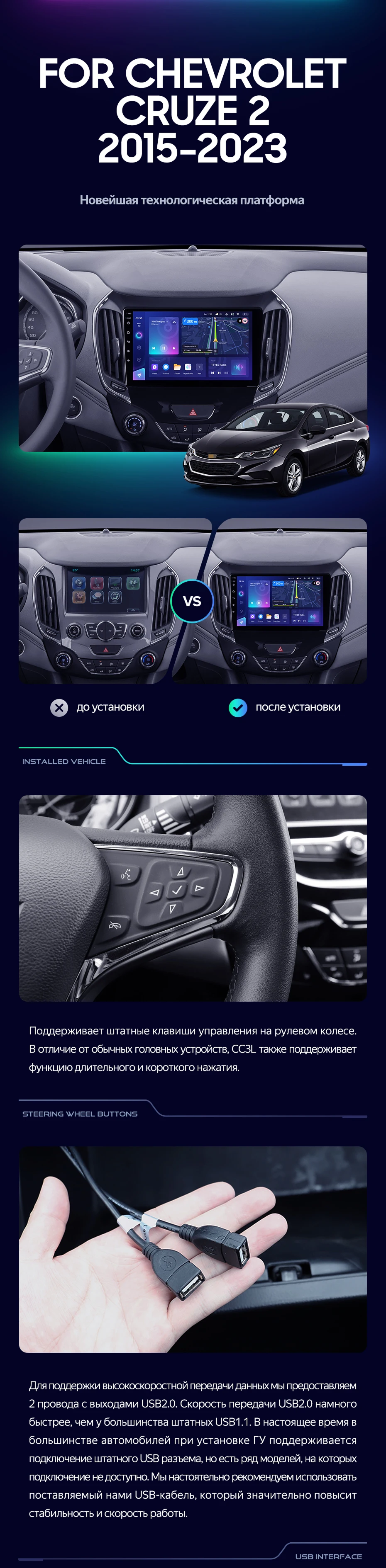 Переходная рамка Chevrolet Cruze 2 (2015-2023) (9") - купить всего за 4 200 руб. в интернет-магазине в Костроме Teyes.com.ru. ✓ Самый лучший выбор мультимедиа ✓ Лучшая замена штатному ГУ ✓ Тел. +7 (800) 775-31-74