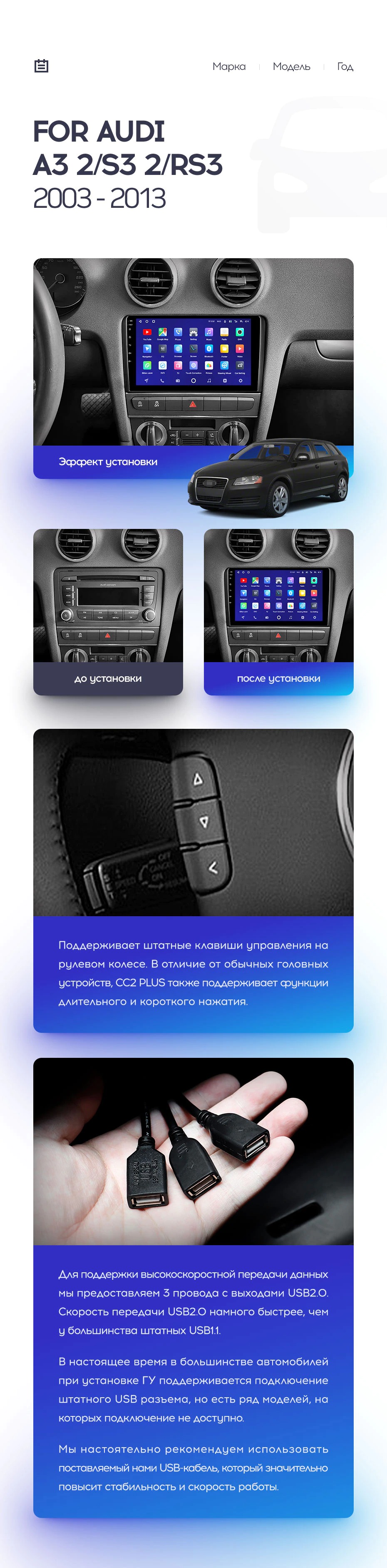 Штатная магнитола Teyes CC2 Plus 4/32 Audi A3 2 8P (2003-2013) - купить всего за 34 400 руб. в интернет-магазине в Костроме Teyes.com.ru. ✓ Самый лучший выбор мультимедиа ✓ Лучшая замена штатному ГУ ✓ Тел. +7 (800) 775-31-74
