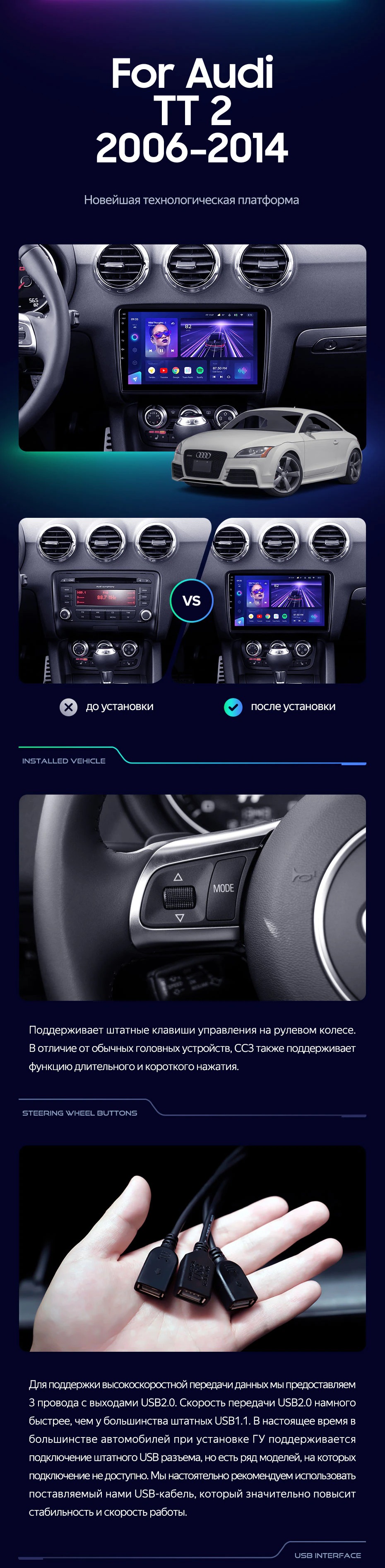 Штатная магнитола Teyes CC3 2K 360 6/128 Audi TT 2 (2006-2014) (13") - купить всего за 52 200 руб. в интернет-магазине в Костроме Teyes.com.ru. ✓ Самый лучший выбор мультимедиа ✓ Лучшая замена штатному ГУ ✓ Тел. +7 (800) 775-31-74