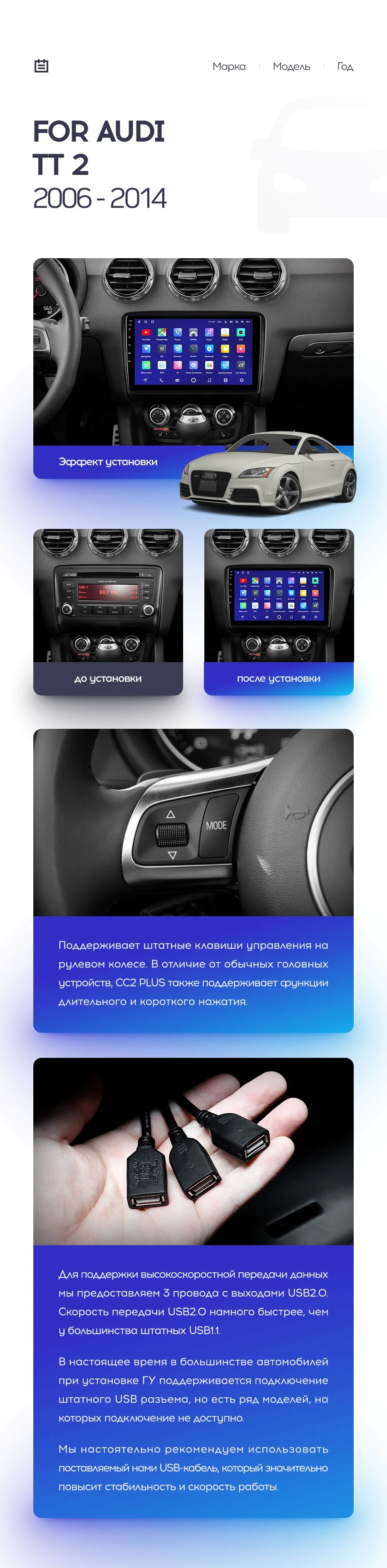 Штатная магнитола Teyes CC3 2K 4/32 Audi TT 2 (2006-2014) (13") - купить всего за 42 500 руб. в интернет-магазине в Костроме Teyes.com.ru. ✓ Самый лучший выбор мультимедиа ✓ Лучшая замена штатному ГУ ✓ Тел. +7 (800) 775-31-74