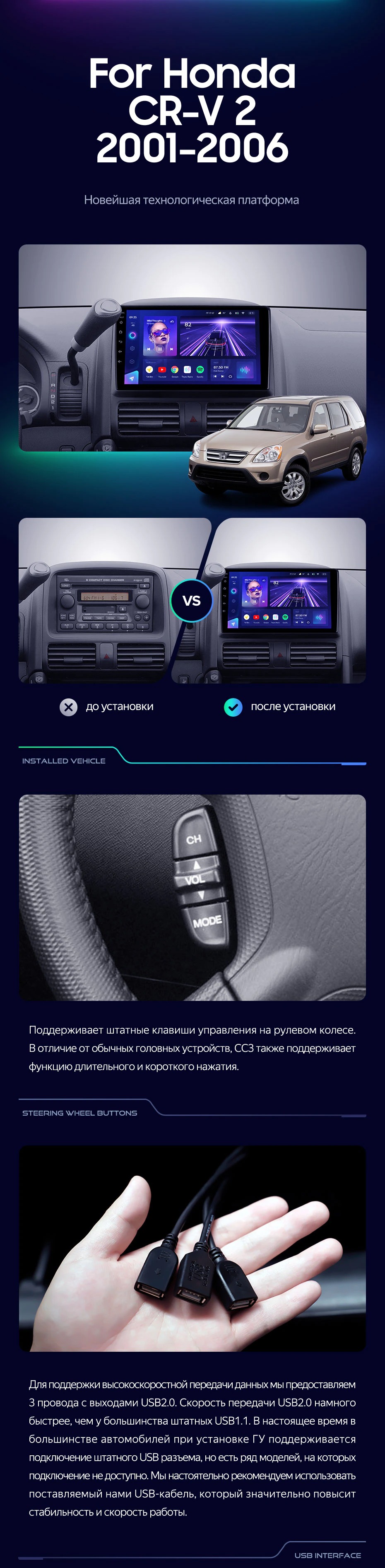 Штатная магнитола Teyes CC3 4/32 Honda CR-V 2 (2001-2006) - купить всего за 32 180 руб. в интернет-магазине в Костроме Teyes.com.ru. ✓ Самый лучший выбор мультимедиа ✓ Лучшая замена штатному ГУ ✓ Тел. +7 (800) 775-31-74