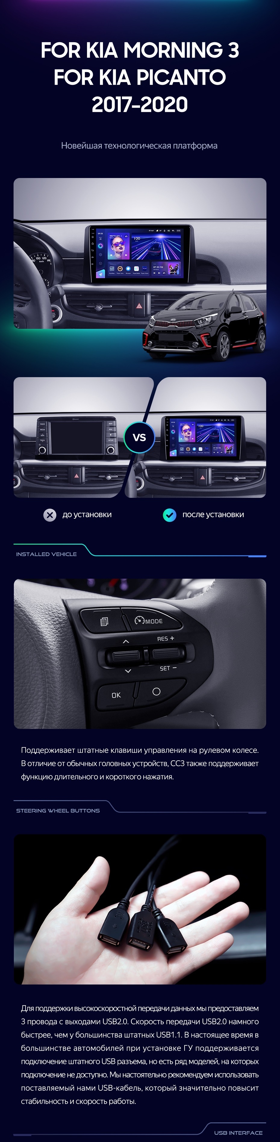 Штатная магнитола Teyes CC3 4/32 Kia Picanto (2017-2020) Тип-A - купить всего за 32 730 руб. в интернет-магазине в Костроме Teyes.com.ru. ✓ Самый лучший выбор мультимедиа ✓ Лучшая замена штатному ГУ ✓ Тел. +7 (800) 775-31-74