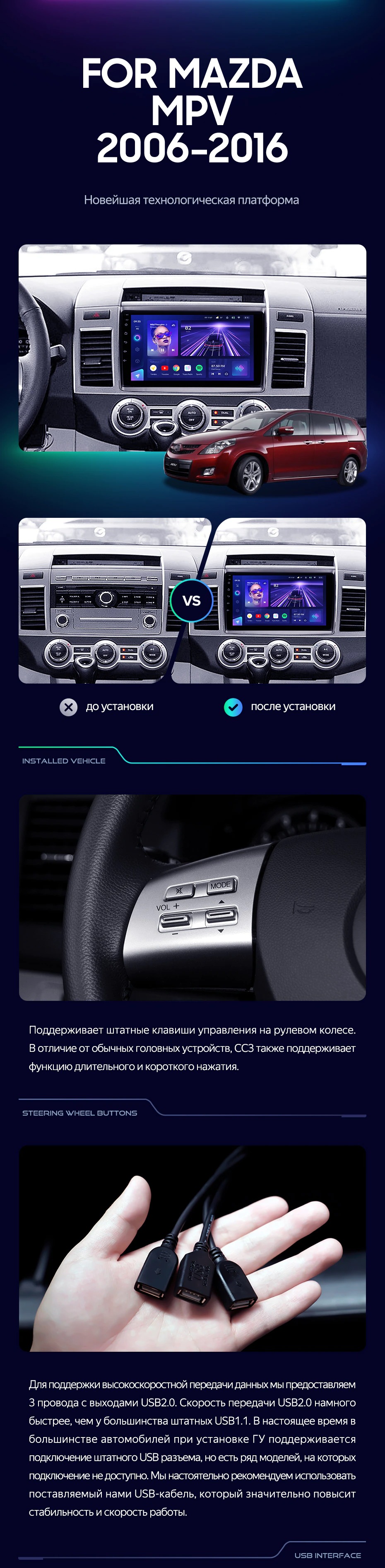 Штатная магнитола Teyes CC3 4/32 Mazda MPV LY (2006-2016) - купить всего за 34 230 руб. в интернет-магазине в Костроме Teyes.com.ru. ✓ Самый лучший выбор мультимедиа ✓ Лучшая замена штатному ГУ ✓ Тел. +7 (800) 775-31-74