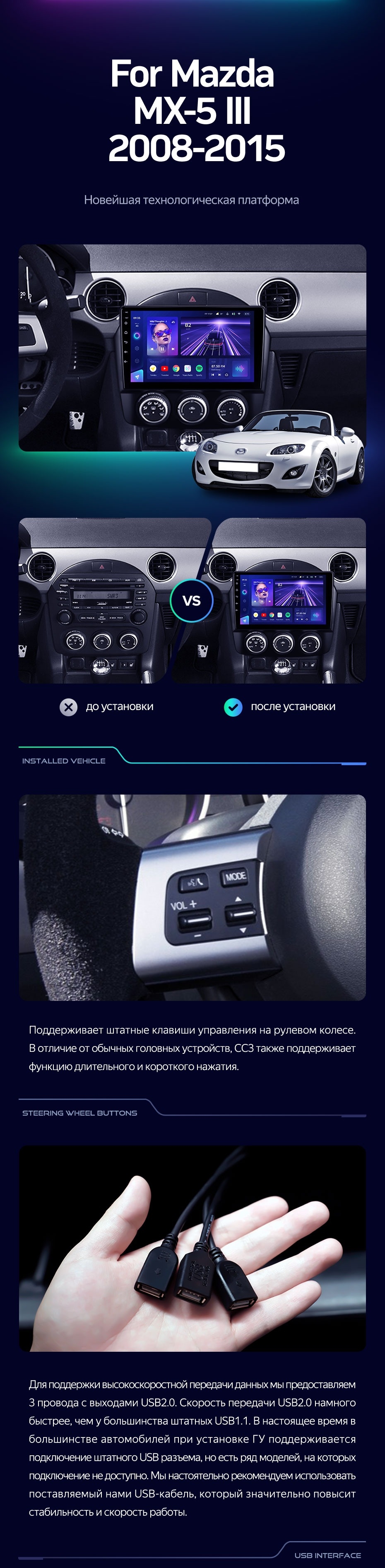 Штатная магнитола Teyes CC3 4/32 Mazda MX-5 (2008-2015) - купить всего за 34 230 руб. в интернет-магазине в Костроме Teyes.com.ru. ✓ Самый лучший выбор мультимедиа ✓ Лучшая замена штатному ГУ ✓ Тел. +7 (800) 775-31-74