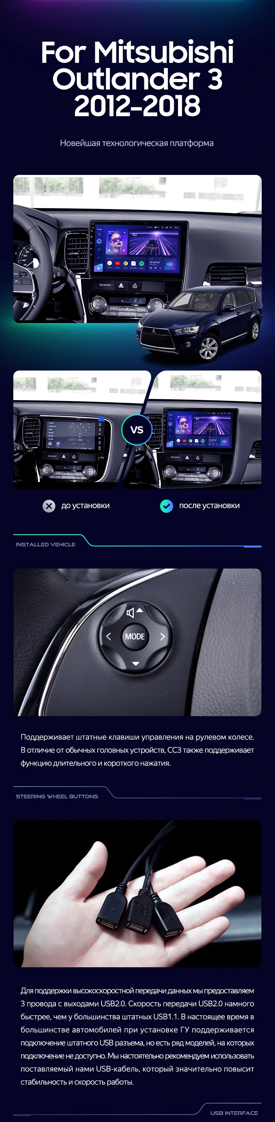 Штатная магнитола Teyes CC3 4/32 Mitsubishi Outlander 3 (2012-2018) Тип-B - купить всего за 33 350 руб. в интернет-магазине в Костроме Teyes.com.ru. ✓ Самый лучший выбор мультимедиа ✓ Лучшая замена штатному ГУ ✓ Тел. +7 (800) 775-31-74