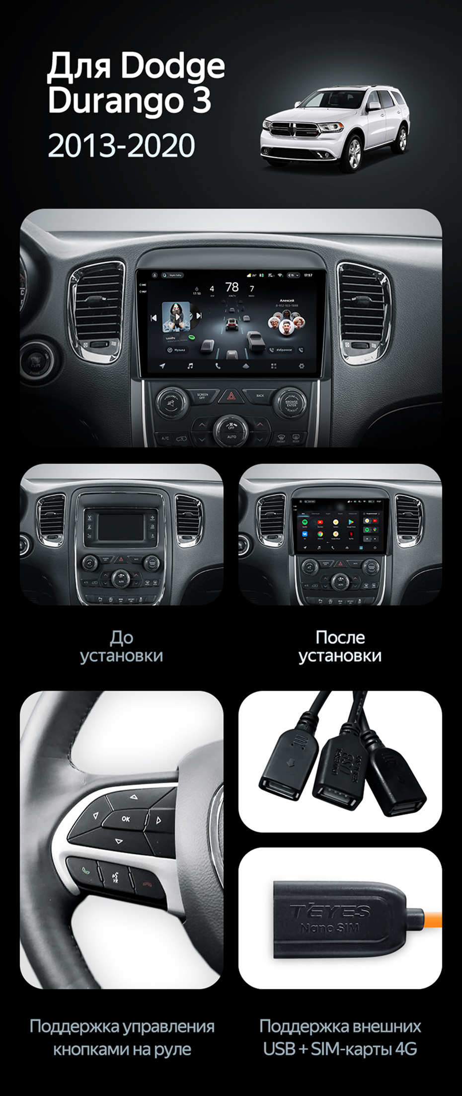 Штатная магнитола Teyes CC3 4/32 Dodge Durango 3 (2013-2020) - купить всего за 35 130 руб. в интернет-магазине в Костроме Teyes.com.ru. ✓ Самый лучший выбор мультимедиа ✓ Лучшая замена штатному ГУ ✓ Тел. +7 (800) 775-31-74