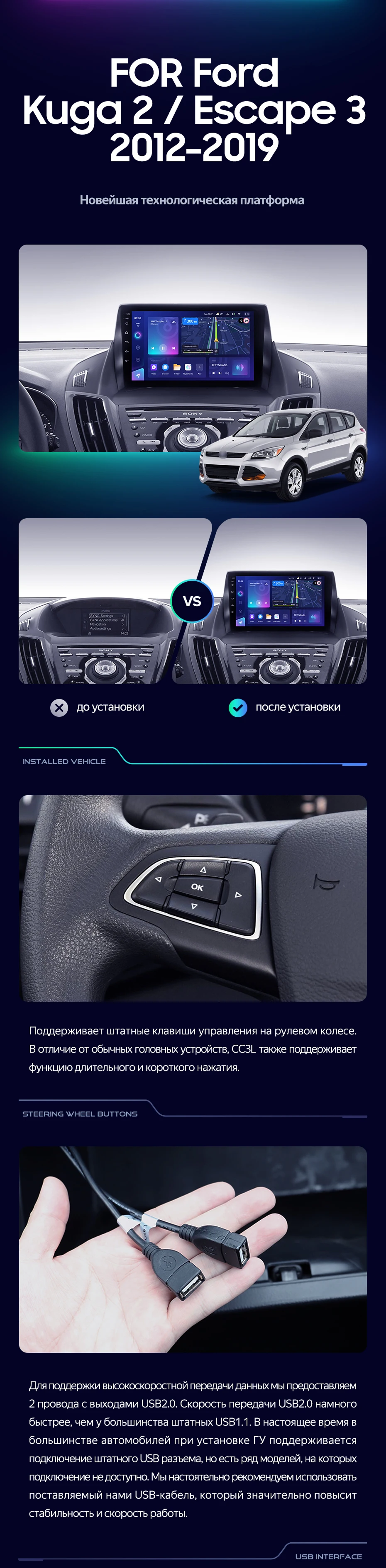 Штатная магнитола Teyes CC3L 4/32 Ford Escape 3 (2012-2019) Тип-A - купить всего за 29 420 руб. в интернет-магазине в Костроме Teyes.com.ru. ✓ Самый лучший выбор мультимедиа ✓ Лучшая замена штатному ГУ ✓ Тел. +7 (800) 775-31-74