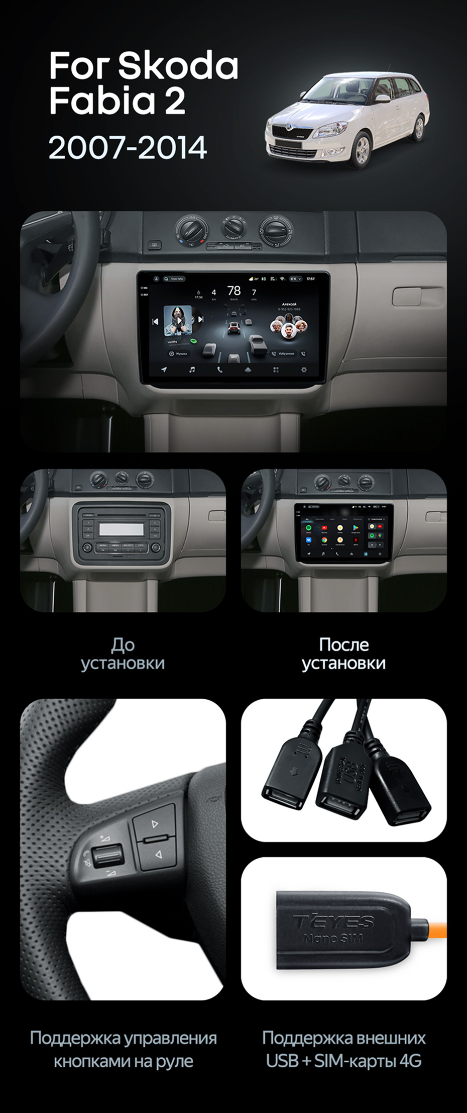 Штатная магнитола Teyes CC4 6/64 Skoda Fabia 2 (2007-2014) - купить всего за 47 800 руб. в интернет-магазине в Костроме Teyes.com.ru. ✓ Самый лучший выбор мультимедиа ✓ Лучшая замена штатному ГУ ✓ Тел. +7 (800) 775-31-74
