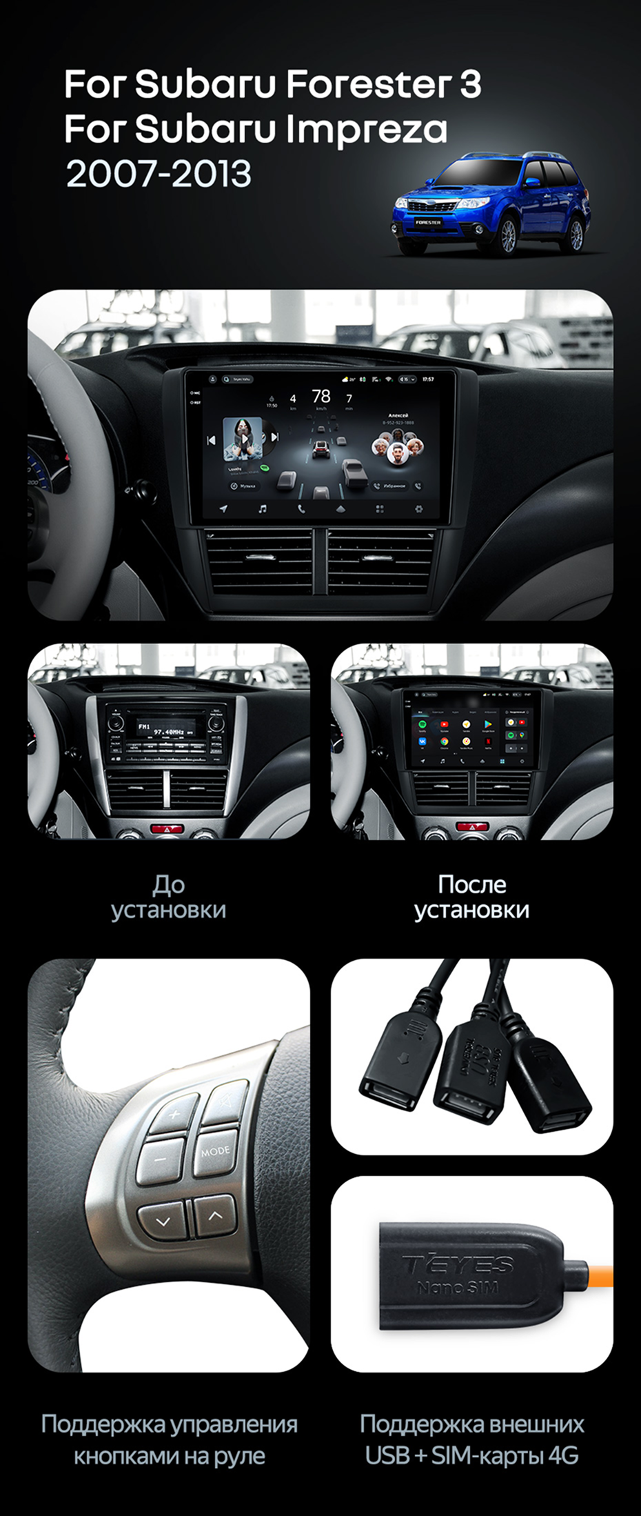 Штатная магнитола Teyes CC4 6/64 Subaru Forester 3 SH (2007-2013) - купить всего за 43 400 руб. в интернет-магазине в Костроме Teyes.com.ru. ✓ Самый лучший выбор мультимедиа ✓ Лучшая замена штатному ГУ ✓ Тел. +7 (800) 775-31-74