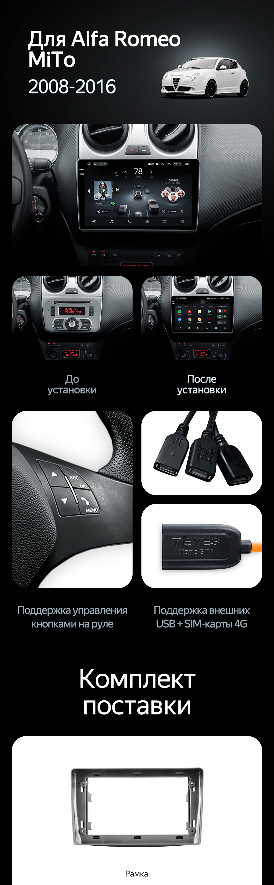 Штатная магнитола Teyes CC4 8/128 Alfa Romeo MiTo 955 (2008-2016) - купить всего за 50 700 руб. в интернет-магазине в Костроме Teyes.com.ru. ✓ Самый лучший выбор мультимедиа ✓ Лучшая замена штатному ГУ ✓ Тел. +7 (800) 775-31-74