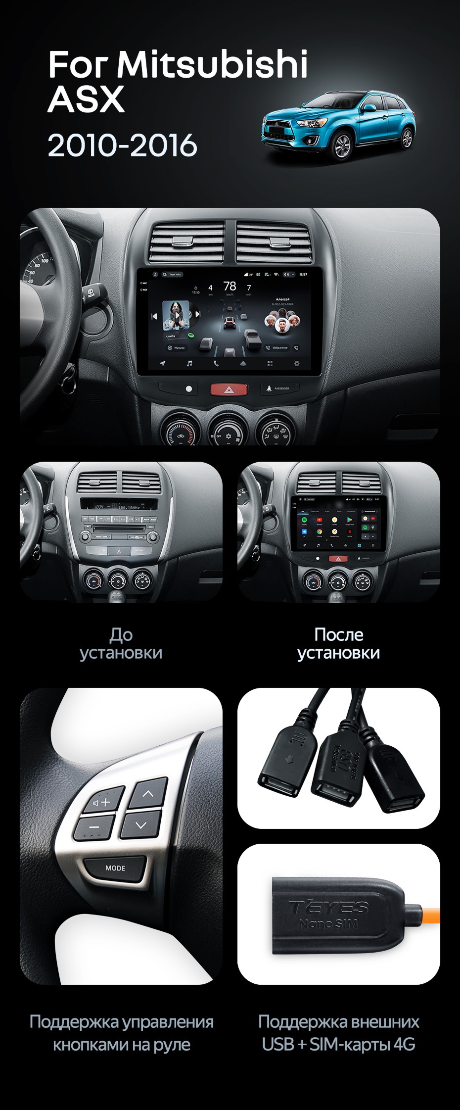Штатная магнитола Teyes CC4 Pro 12/256 Mitsubishi ASX 1 (2010-2016) Тип-A - купить всего за 68 800 руб. в интернет-магазине в Костроме Teyes.com.ru. ✓ Самый лучший выбор мультимедиа ✓ Лучшая замена штатному ГУ ✓ Тел. +7 (800) 775-31-74
