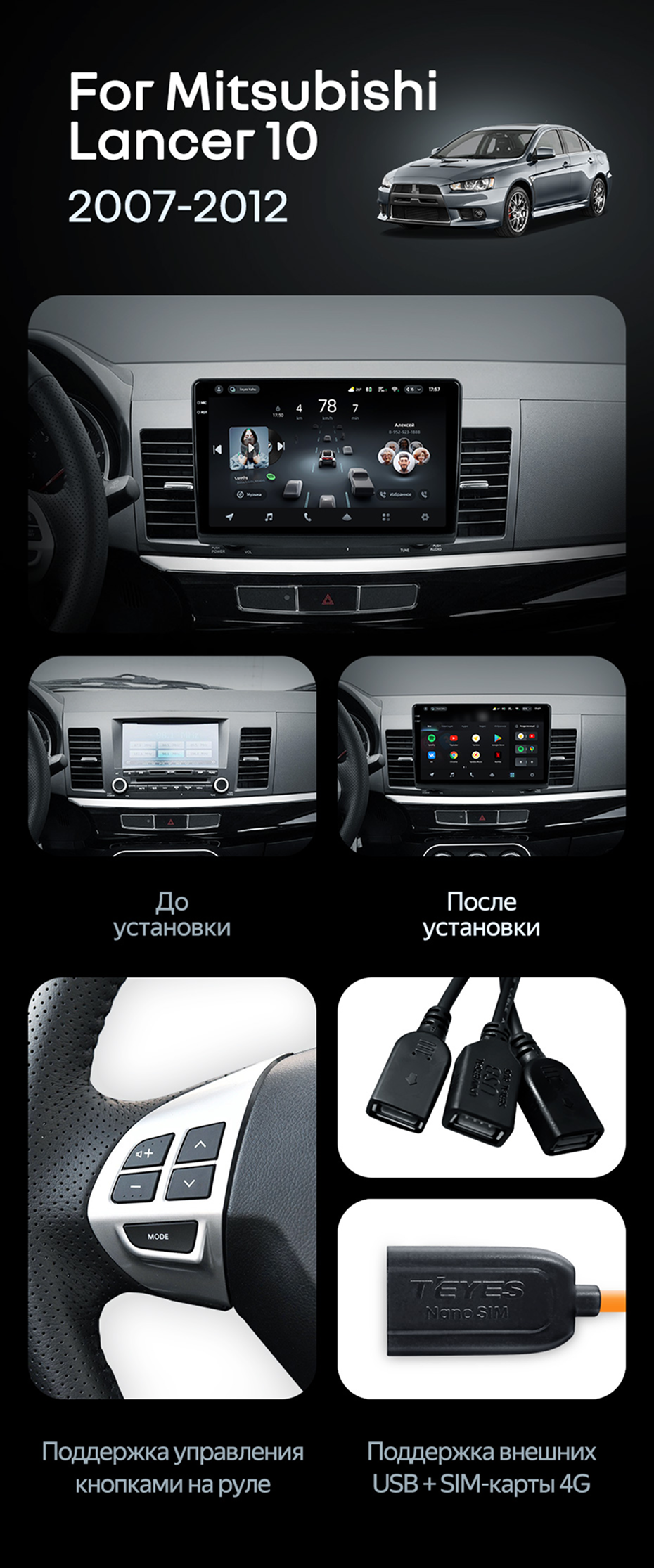 Штатная магнитола Teyes CC4 Pro 12/256 Mitsubishi Lancer 10 CY (2007-2012) Тип-B - купить всего за 69 750 руб. в интернет-магазине в Костроме Teyes.com.ru. ✓ Самый лучший выбор мультимедиа ✓ Лучшая замена штатному ГУ ✓ Тел. +7 (800) 775-31-74