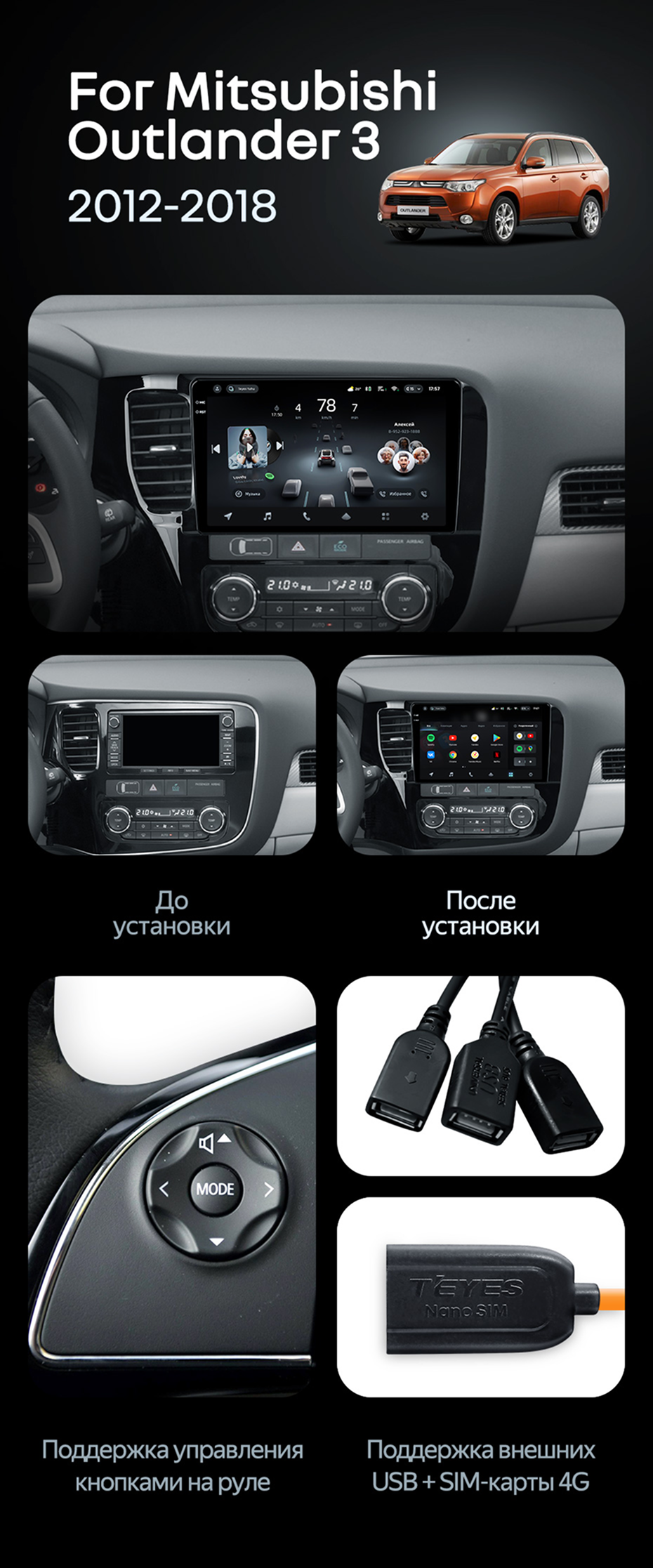 Штатная магнитола Teyes CC4 Pro 12/256 Mitsubishi Outlander 3 (2012-2018) Тип-B - купить всего за 69 260 руб. в интернет-магазине в Костроме Teyes.com.ru. ✓ Самый лучший выбор мультимедиа ✓ Лучшая замена штатному ГУ ✓ Тел. +7 (800) 775-31-74