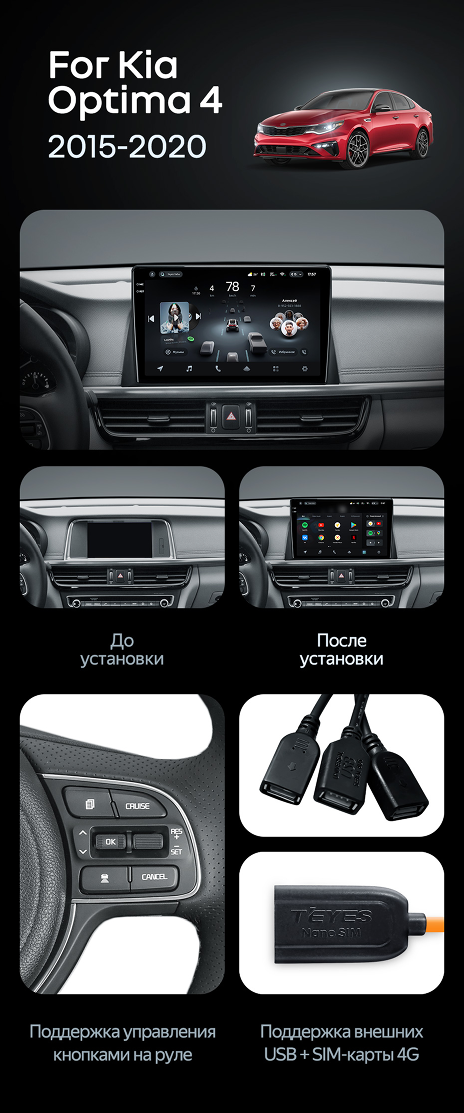 Штатная магнитола Teyes CC4 Pro 8/128 Kia Optima 4 JF (2015-2020) Тип-A - купить всего за 58 240 руб. в интернет-магазине в Костроме Teyes.com.ru. ✓ Самый лучший выбор мультимедиа ✓ Лучшая замена штатному ГУ ✓ Тел. +7 (800) 775-31-74