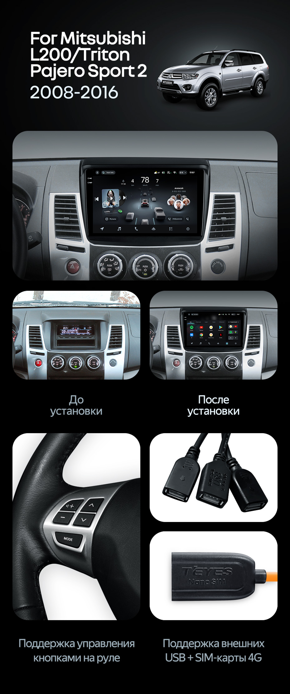 Штатная магнитола Teyes CC4 Pro 8/128 Mitsubishi L200 (2008-2016) - купить всего за 58 400 руб. в интернет-магазине в Костроме Teyes.com.ru. ✓ Самый лучший выбор мультимедиа ✓ Лучшая замена штатному ГУ ✓ Тел. +7 (800) 775-31-74