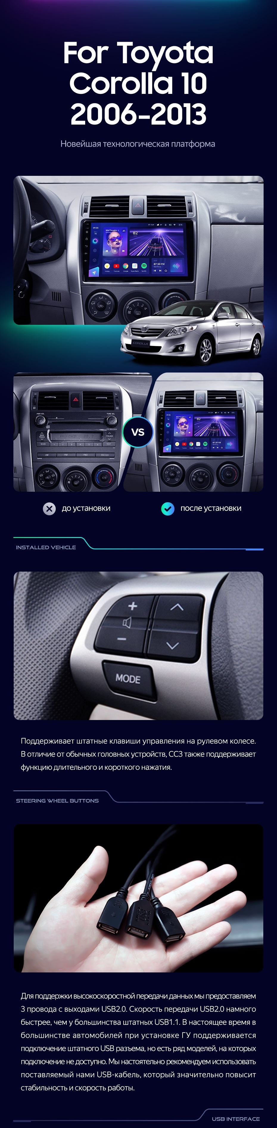 Штатная магнитола Teyes CC4 Pro 8/128 Toyota Corolla 10 E140 E150 (2006-2013) Тип-A - купить всего за 58 030 руб. в интернет-магазине в Костроме Teyes.com.ru. ✓ Самый лучший выбор мультимедиа ✓ Лучшая замена штатному ГУ ✓ Тел. +7 (800) 775-31-74