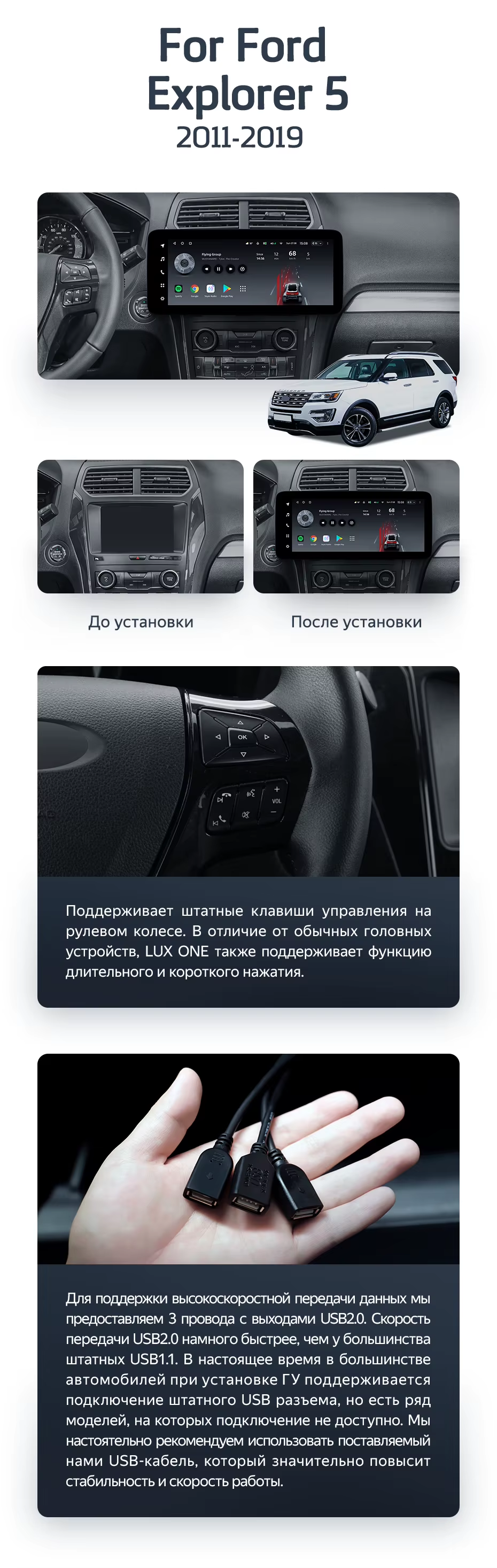 Штатная магнитола Teyes LUX ONE 4/64 Ford Explorer 5 (2011-2019) - купить всего за 48 300 руб. в интернет-магазине в Костроме Teyes.com.ru. ✓ Самый лучший выбор мультимедиа ✓ Лучшая замена штатному ГУ ✓ Тел. +7 (800) 775-31-74