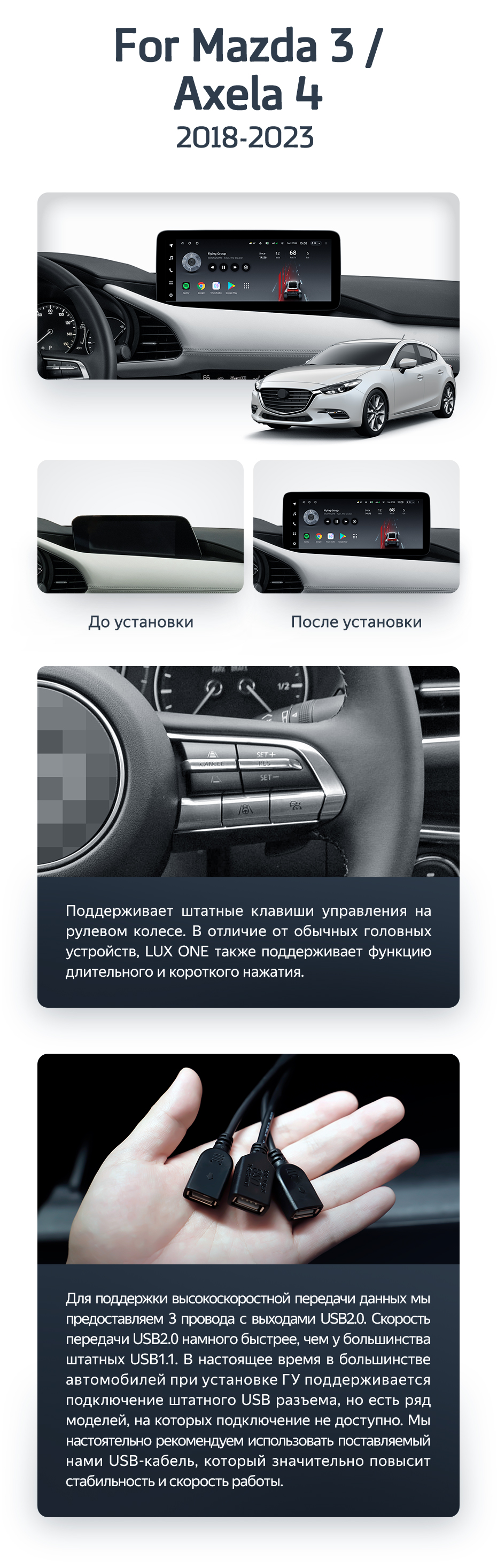 Штатная магнитола Teyes LUX ONE 4/64 Mazda 3 BP (2018-2023) Тип-B - купить всего за 42 700 руб. в интернет-магазине в Костроме Teyes.com.ru. ✓ Самый лучший выбор мультимедиа ✓ Лучшая замена штатному ГУ ✓ Тел. +7 (800) 775-31-74