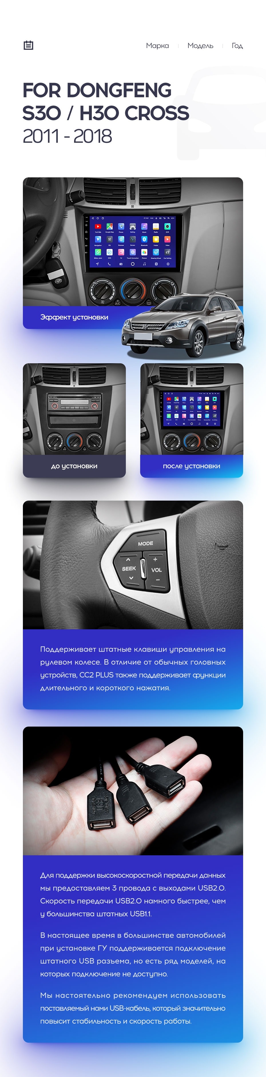 Полный комплект установки магнитолы Teyes с рамкой и проводкой можно выбрать в каталоге штатных магнитол Dongfeng S30 H30 Cross (2011-2018).