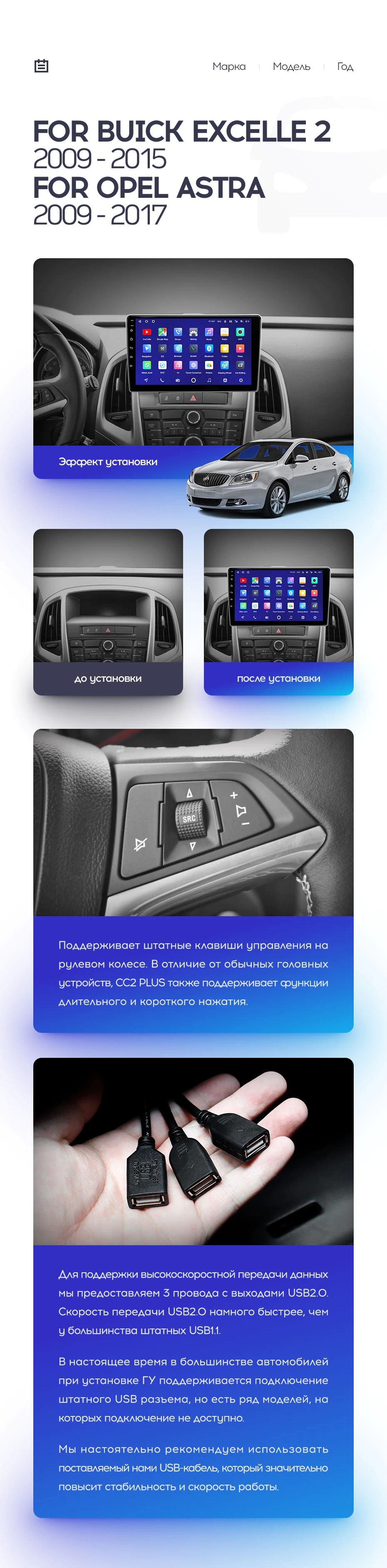 Полный комплект установки магнитолы Teyes с рамкой и проводкой можно выбрать в каталоге штатных магнитол Opel Astra J (2009-2017).