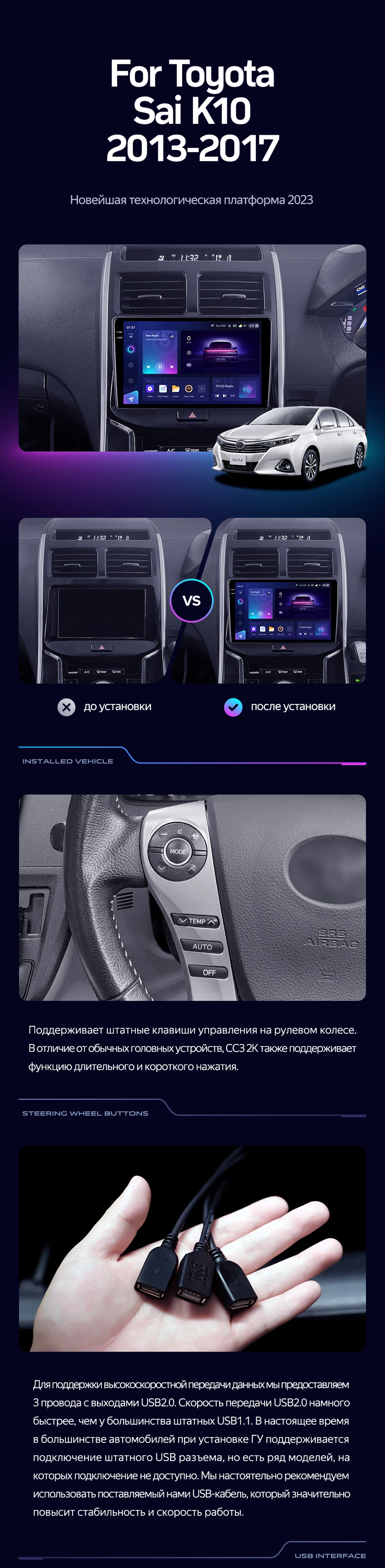 Переходная рамка Toyota Sai K10 (2013-2017) (9") - купить всего за 7 400 руб. в интернет-магазине в Костроме Teyes.com.ru. ✓ Самый лучший выбор мультимедиа ✓ Лучшая замена штатному ГУ ✓ Тел. +7 (800) 775-31-74